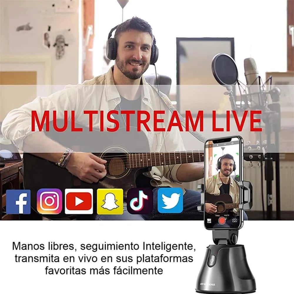 El Robot Selfie 360° con base de rotación automática es el accesorio perfecto para grabar videos y tomar fotografías sin ayuda, ideal para creadores de contenido, videollamadas, transmisiones en vivo y videoblogs.